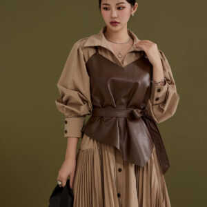 A3123 Leather Asymmetrical Bustier with Belt