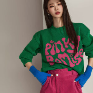 A3185 Texted Color Contrasting Knit